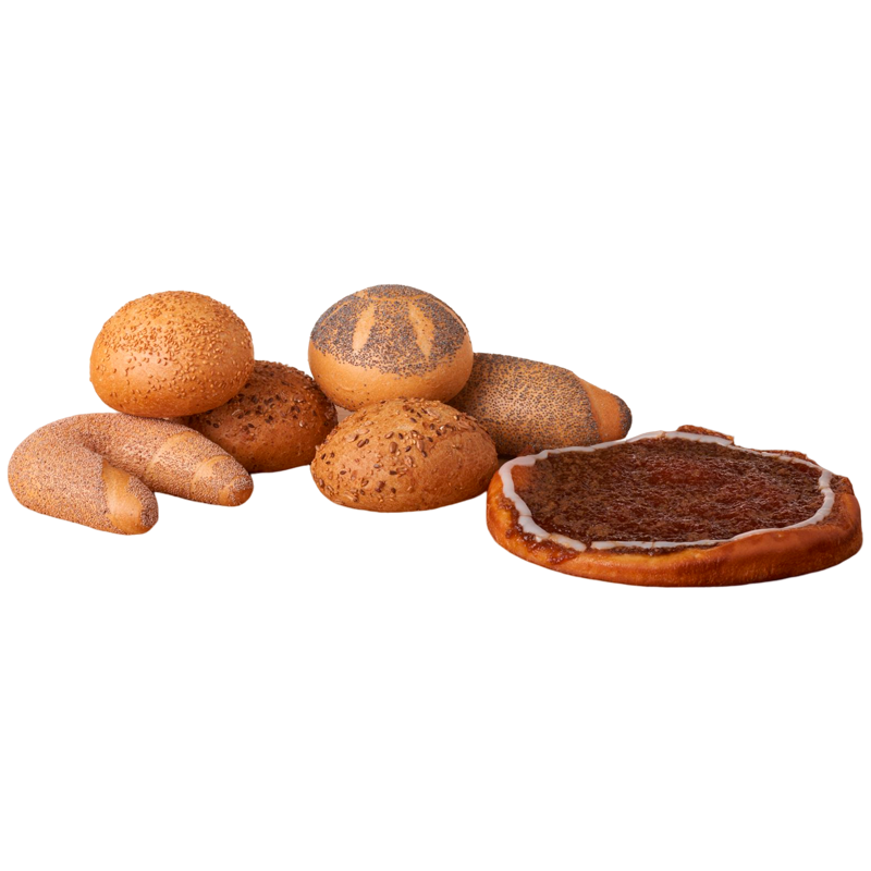 Morgentilbud bestående af 1 familie brunsviger og 6 rundstykker.